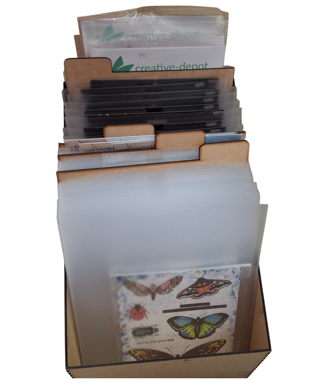 Produktinformationen "A4 BOX für Stempel / Stanzen mit 50 Hüllen + 4 Tabs"