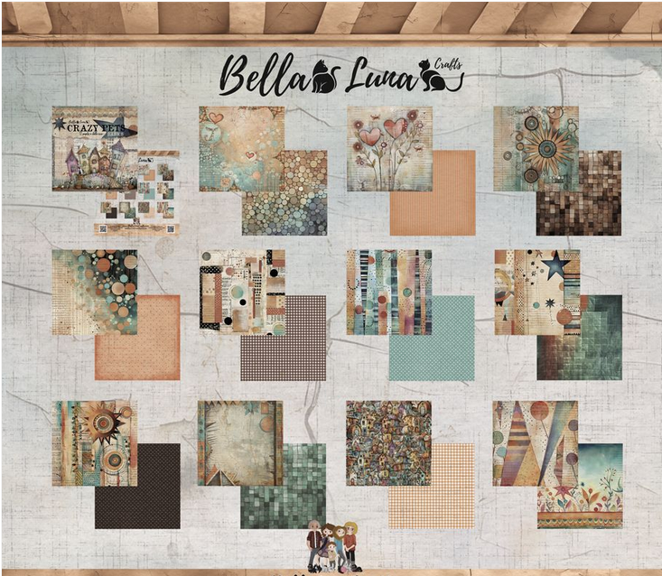 Produktinformationen " Bellaluna Crafts Pad 12x12" Bellaluna Crafts con 12 papeles doble cara Crazy Pets Basics"