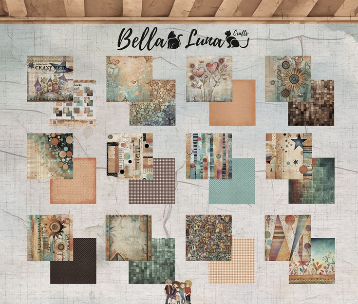 Produktinformationen " Bellaluna Crafts Pad 8x8" Bellaluna Crafts con 12 papeles doble cara Crazy Pets Basics"