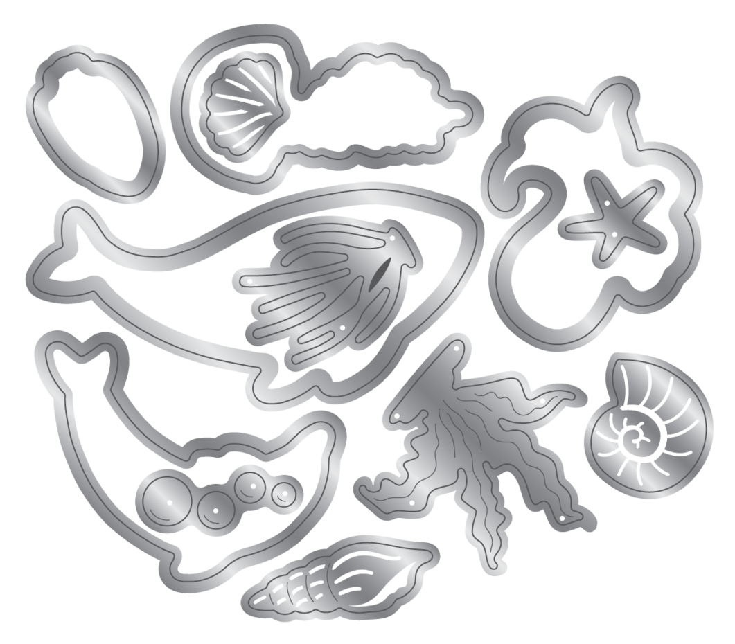 5 metal dies and 6 stamps to create a timeless sea scene