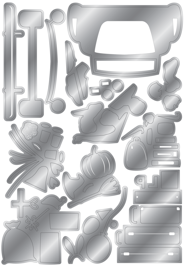 28-piece set with stamps and dies to create a car centrepiece