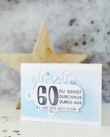 Dieses vielseitige Stempelset kombiniert große Zahlen für Jubiläen oder Geburtstage mit humorvollen und liebevollen Sprüchen auf Deutsch.