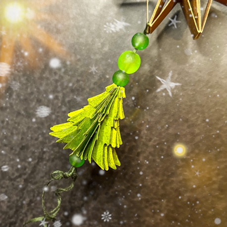 Durch die Anzahl der einzelnen Tüten, die aneinander geklebt werden, verändert sich die Fächerung und gibt die Möglichkeit die Optik der Tannen zu beeinflussen, enger oder weiter gefächert.