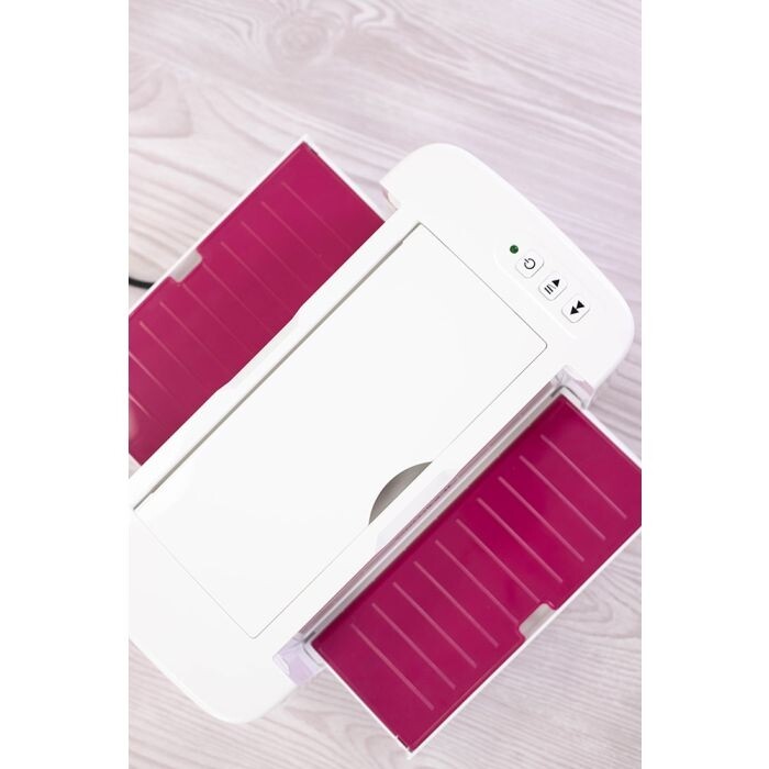 Integrierte Ablagefächer sorgen dafür, dass alle Ihre Bastelutensilien ordentlich organisiert und aufbewahrt werden können, während sie bei Bedarf immer griffbereit sind. Außerdem ist eine praktische Bedienungsanleitung enthalten, damit Sie Ihre Maschine optimal nutzen können. Stellen Sie Ihr Tablet auf den ausklappbaren Medienständer und lassen Sie Ihrer Kreativität freien Lauf!