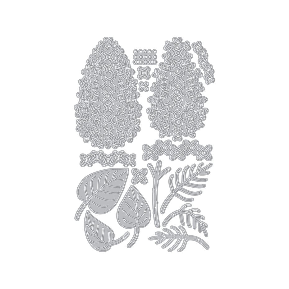 Kreieren Sie mit dem Stanzformen-Set „Lilac Layered Lilac“ einen atemberaubenden floralen Blickfang. Das Set enthält mehrere Stanzformen, die zusammen eine üppige, plastische Fliederblüte mit Blättern und zarten Details ergeben. Dieses Set eignet sich perfekt zum Experimentieren mit Farben und harmoniert wunderbar mit sanften Lilatönen für einen klassischen Flieder-Look oder mit kräftigen, unerwarteten Farben für ein modernes florales Statement. Kombinieren Sie die einzelnen Teile für mehr Tiefe oder halten Sie es schlicht mit einer einzigen Farbe für ein klares, elegantes Design. Das Stanzformen-Set enthält 16 Metallstanzformen.
