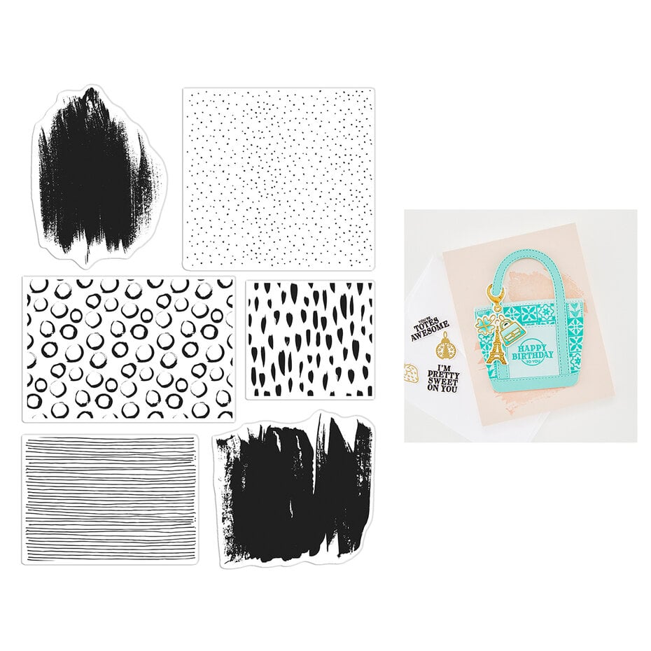 Verleihen Sie Ihren Projekten mit dem transparenten Stempelset „Hintergrundgestaltung“ Struktur, Tiefe und Persönlichkeit. Dieses vielseitige Set bietet eine Mischung aus organischen Mustern, Farbmustern und grafischen Texturen, die sich hervorragend als Basiselemente auf Karten eignen. Verwenden Sie die Stempel, um dem Stanzformenset „Tragetasche“ Muster und Details hinzuzufügen, mehrschichtige Mixed-Media-Hintergründe zu gestalten oder kleineren Stanzteilen und Motiven eine dezente Textur zu verleihen. Die Designs lassen sich leicht anpassen – stempeln Sie Ton in Ton für einen sanften Look oder verwenden Sie kräftige Farben für mehr Ausdruckskraft. Ein unverzichtbares Set, um allen Arten von Projekten Interesse, Kontrast und kreatives Flair zu verleihen. Dieses transparente Stempelset enthält 6 Stempel. Ungefähre Größe: Stempelset: 15,2 x 20,3 cm