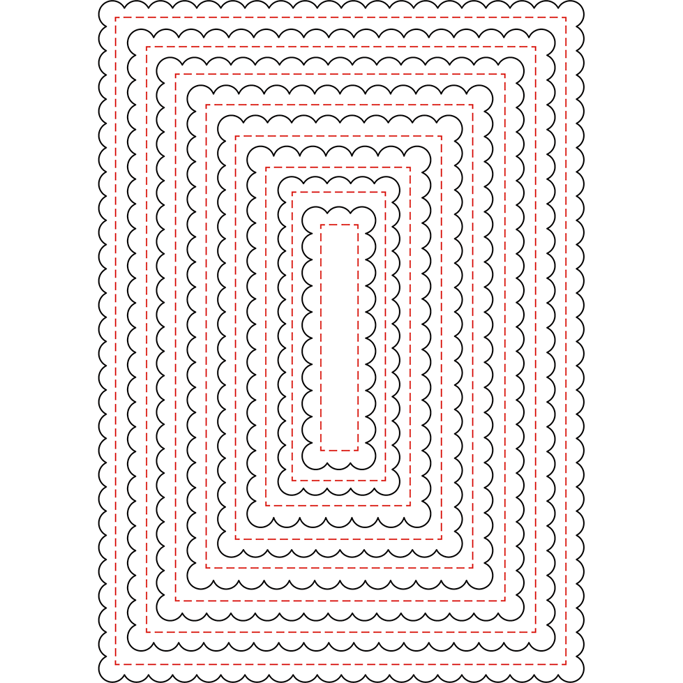 Largest A7 card frame: 5" wide x 7" tall (outside of scallop)
