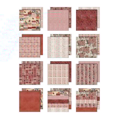 Tim Holtz Idea-ology Palette Collection: Rot 12 x 12. Die Palette Collection: Rot besticht durch satte, ausdrucksstarke Farben und Charakter. Sie zelebriert die beeindruckende Tiefe des zeitlosen Rotspektrums – von Ziegelrot über Karmesinrot und Rostrot bis hin zu satten Weihnachtstönen. Dieses Set aus 12 doppelseitigen Papieren vereint strukturierte Muster mit nostalgischen Collage-Motiven und ermöglicht so ausdrucksstarkes Storytelling mit Vintage-Charme. Dramatische Rottöne verleihen Ihren Projekten sofort Energie, Kontrast und Emotionen. Eine Papierkollektion, die sich perfekt für Scrapbooking, Junk Journals und Mixed-Media-Kunst eignet. Aus Papier. 12 x 12 Zoll. 12 doppelseitige Papiere.