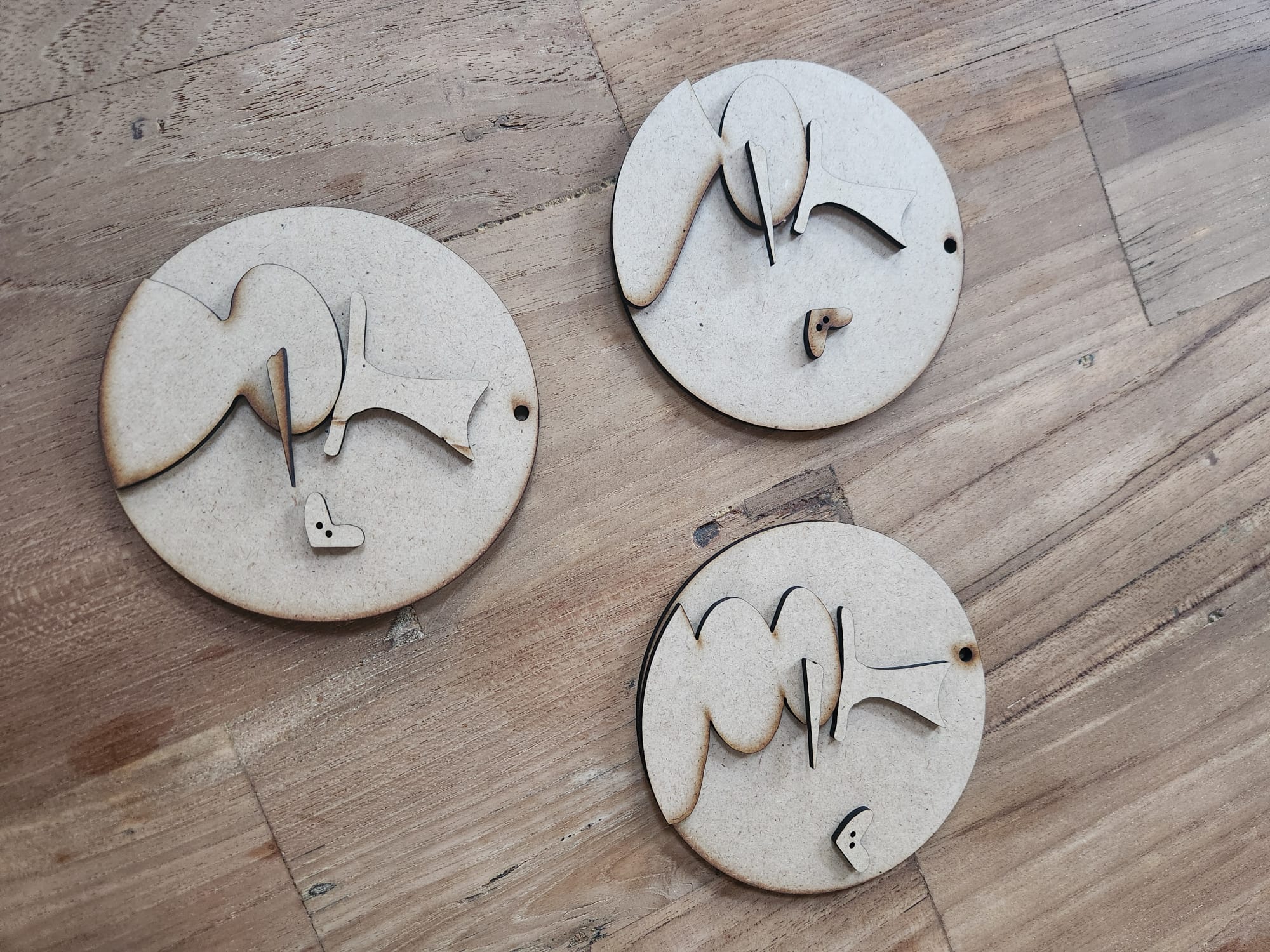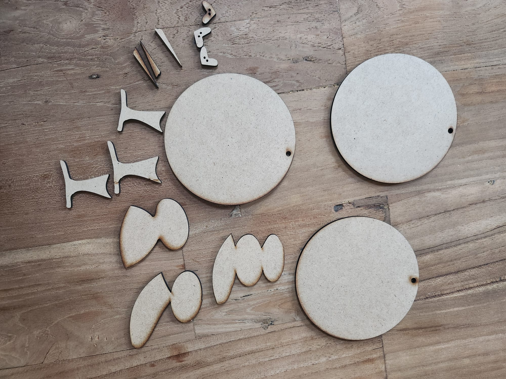 - Die Formen lassen sich mit Acrylfarben, Lacken, Beizen oder Holzlasuren bemalen.