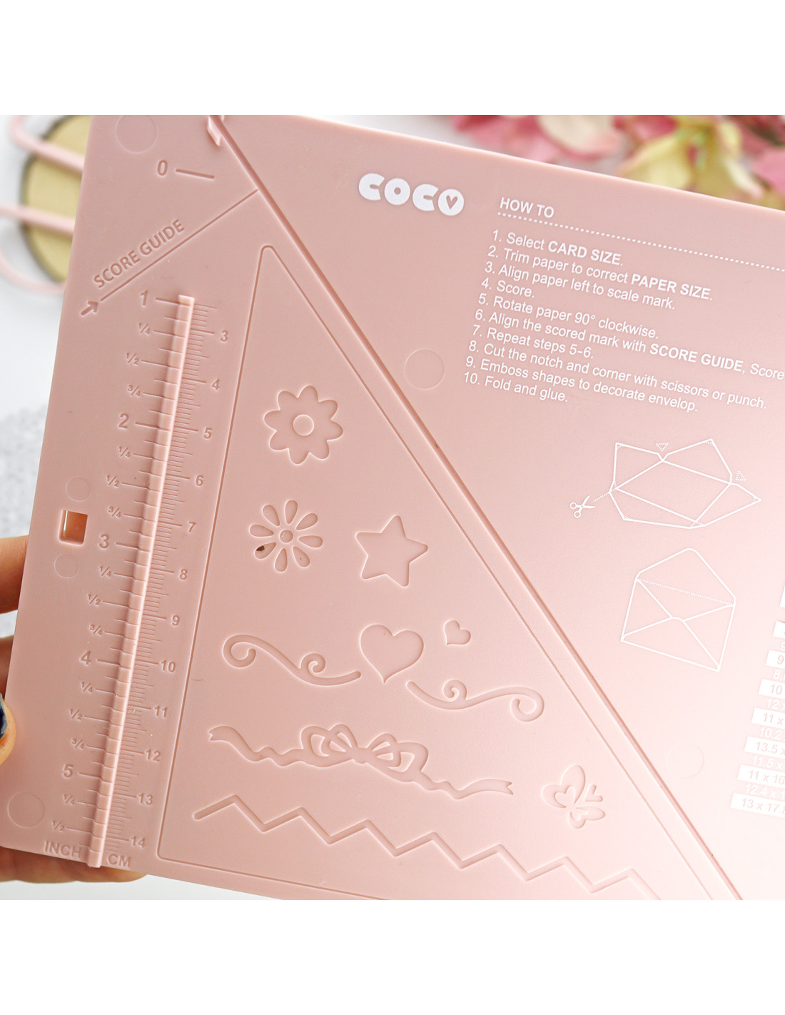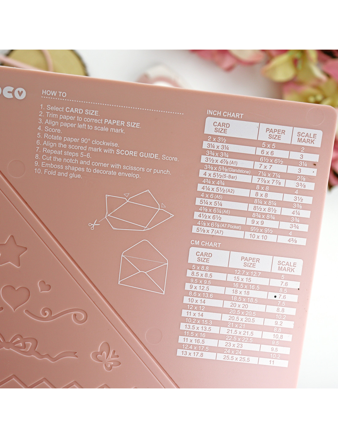 Auf der Rückseite befinden sich feste Lineale und Faltmarkierungen, die Ihnen beim Erstellen von Umschlägen helfen.