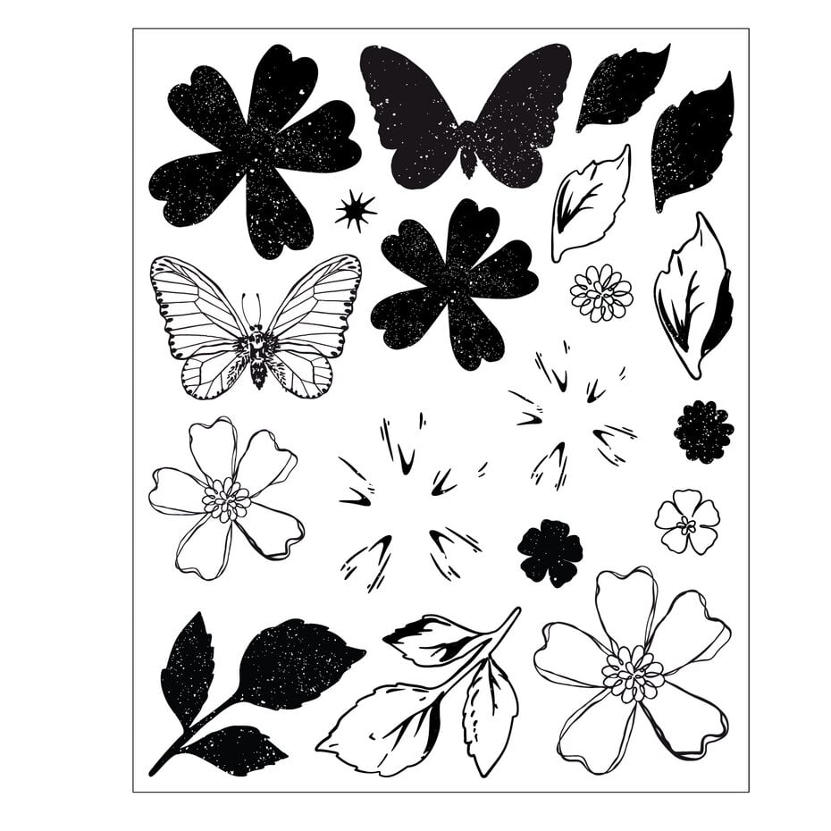 Das Stempelset „Sweet Sprigs“ von 49 & Market besteht aus 19 transparenten Stempeln und 9 passenden Framelits-Stanzformen. Es ist kompatibel mit den Stanzmaschinen Sizzix Sidekick und Big Shot. Mit diesem Set lassen sich detailreiche, mehrschichtige Pflanzenmotive mit sauberen, präzisen Ergebnissen gestalten. Die Stempel mit zarten Blüten, Zweigen und einem Schmetterling können einzeln für zusätzliche Struktur oder in Kombination mit den Framelits-Stanzformen verwendet werden, um die gestempelten Motive mühelos auszuschneiden. Ideal für Papierbastelprojekte wie Scrapbooking, Kartenherstellung, Journaling, Geschenkanhänger und andere kreative Arbeiten – dieses Set verleiht jedem Projekt Charme und Eleganz. „Sweet Sprigs“ harmoniert perfekt mit der A4-Schablone „Petal Play“ (667061) und bietet unzählige Möglichkeiten zum Kombinieren und Gestalten von filigranen Blumenmotiven für all Ihre Bastelprojekte.