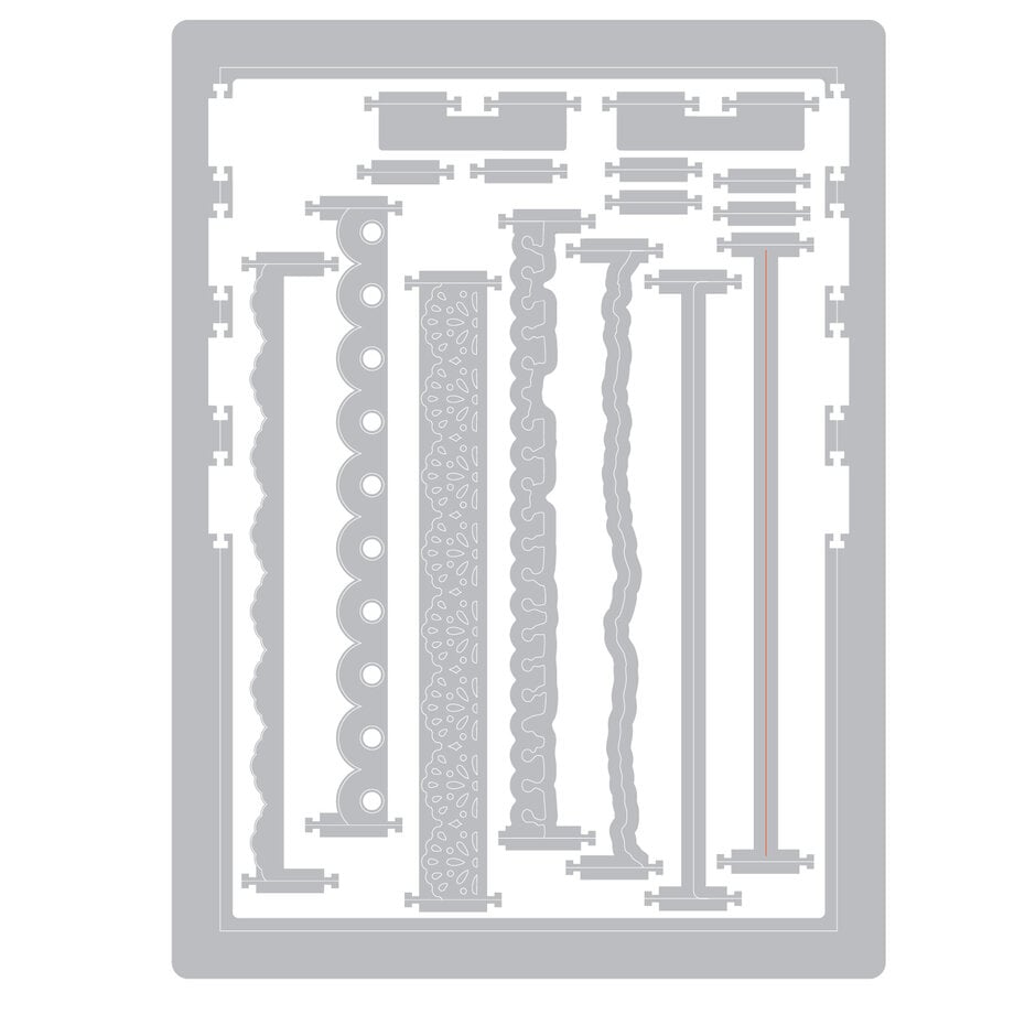 Das „Snap and Swap Journal Thinlits“-Stanzformenset von 49 and Market ist ein hauchdünnes Stanzformenset, das speziell für die Verwendung mit der Sizzix Big Shot Stanzmaschine entwickelt wurde. Mit diesem Set lassen sich handgefertigte Notizbücher aus Karton, gemustertem Papier, Pergamentpapier und anderen Materialien gestalten. Das Set enthält austauschbare Randdesigns wie Wellen-, Riss- und Spitzenmuster, mit denen Sie die Elemente nach Belieben kombinieren und in die Stanzform einklicken können – für eine individuelle Gestaltung. Dieses 16-teilige Set bietet Flexibilität, Personalisierung und filigrane Details für jedes DIY-Notizbuch.