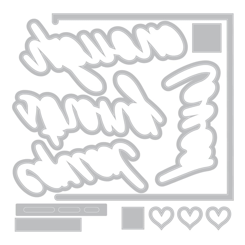 A5 Clear Stamps 18er-Pack mit 23 Thinlits Stanzformen „Affirmationen“ von 49 und Market