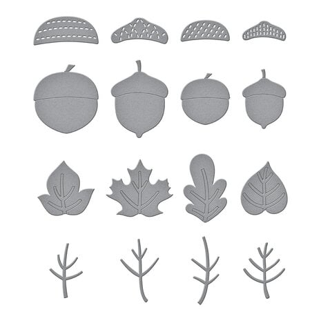 Die geätzten Stanzformen „Fallende Blätter“ stammen aus der Autumn Archives Collection von Kelly Bangs. Was wäre der Herbst ohne Blätter und Eicheln? Mit diesem Set aus 13 dünnen Metallstanzformen können Sie viele davon stanzen! Es gibt jeweils vier Designs und Größen für Eichel- und Blattformen. Die Autumn Archives Collection von Kelly Bangs ist eine Jahreszeit voller Pullover und kuscheliger Herbstfarben. Eine wunderbare Zeit, um Erinnerungen an gemütliche Zusammenkünfte und schöne Momente festzuhalten!