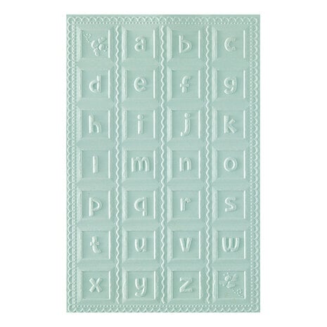 Die 3D-Prägevorlage „Classic Pooh Baby Blocks“ ist eine 5,50 x 8,50 Zoll große Prägevorlage mit einem wunderschönen Hintergrund, der mit Kleinbuchstaben und zwei summenden Bienenblöcken in einem süßen Schleifendesign verziert ist. Für einen interessanten Effekt können Sie die Blöcke mit dem 1-Zoll-Quadratstanzer T-081 (separat erhältlich) ausstanzen und mit Schaumstoffquadraten aufkleben oder einzeln verwenden.