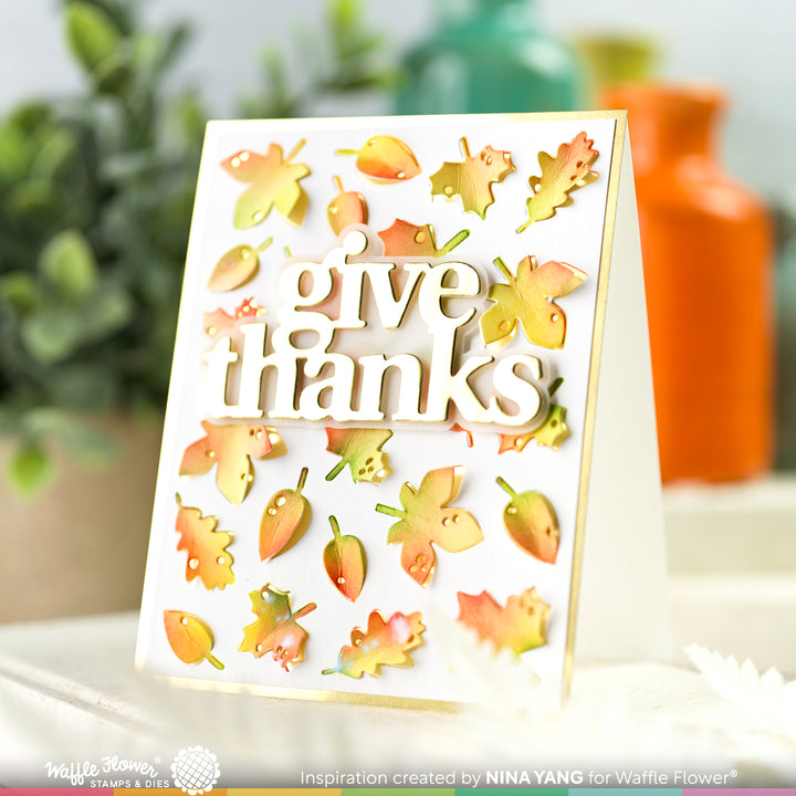 Mit dieser Schablone können Sie im Handumdrehen ein farbenfrohes Herbstlaub-Hintergrunddesign erstellen. Kann mit der Pop-up Fall Leaves Die für zusätzliche Dimensionen kombiniert werden.