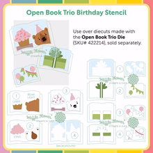 Produktinformationen "Waffle Flower - Open Book Trio Birthday Stencil"